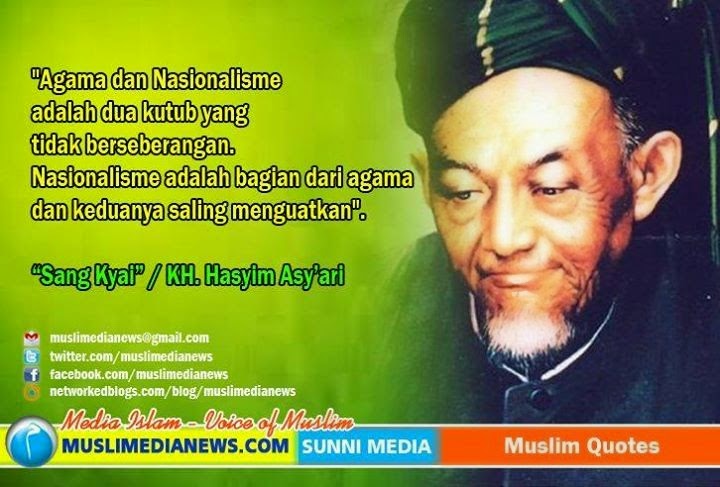 "Agama dan Nasionalisme adalah dua kutub yang tidak berseberangan. Nasionalisme adalah bagian dari Agama, dan keduanya saling menguatkan" (K.H. Hasyim Asy’ari).